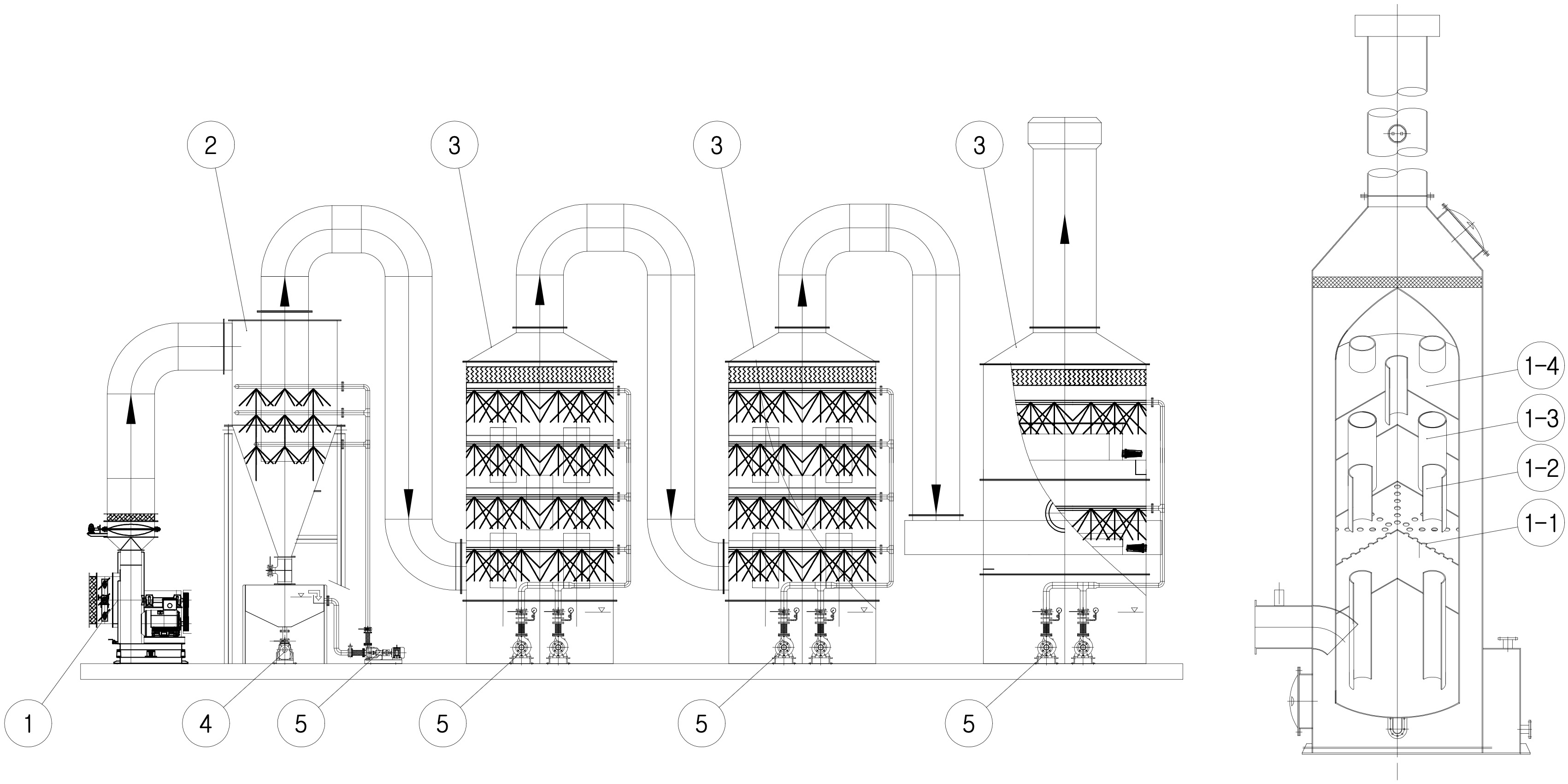- 전단계 : 톱밥,먼지등의 분진을 습식으로 제거가 우수합니다.